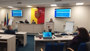 Klaipėdos regiono plėtros tarybos administracijos ekspertė Jovita Michniovienė posėdyje kalbėjo apie 2022–2030 m. Klaipėdos regiono plėtros plano įgyvendinimą.