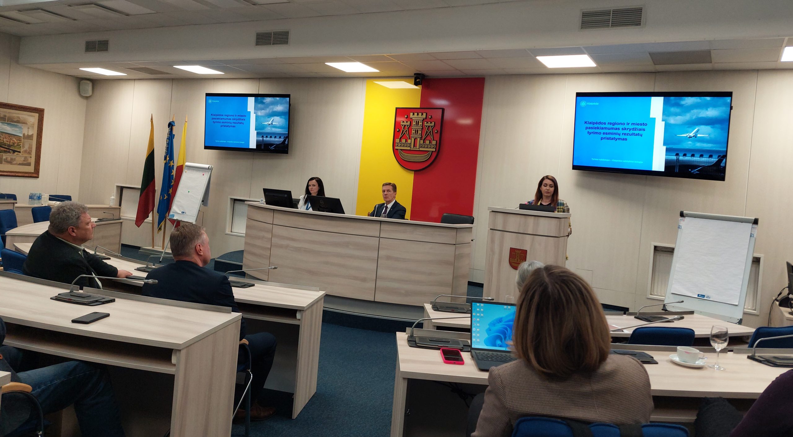 Klaipėdos miesto savivaldybės administracijos Turizmo skyriaus vedėja Jūratė Sokolova posėdžio dalyviams pristatė informaciją apie atliktą tyrimą „Klaipėdos regiono ir miesto skrydžių pasiekiamumo analizė“. Tyrimo tikslas – įvertinti, kaip Klaipėdos miestas ir regionas yra pasiekiami oro transportu bei kokios galimybės ir kliūtys egzistuoja šioje srityje.